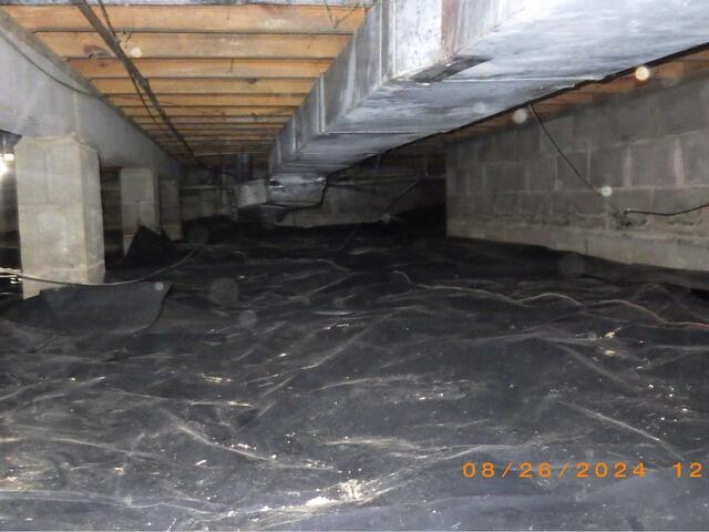 After a thorough evaluation, crawl space specialist Eric recommended a full CleanSpace Encapsulation System with drainage upgrades and structural improvements. Foreman Joe and his crew installed an IceGuard and LawnScape outlet to manage water flow, a SuperSump system with a cast iron pump, and a SaniDry Sedona dehumidifier to control humidity. Structural reinforcements included a sister joist, new Advantech subflooring, and band board blocking.