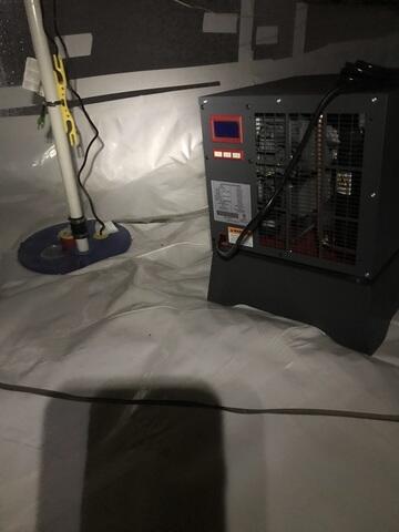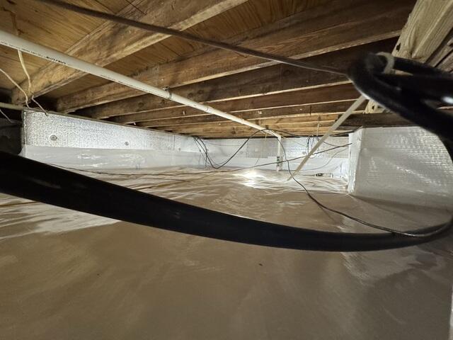 Foreman Joe and his crew began by removing and disposing of the existing fiberglass insulation from the crawl space. They then installed the CleanSpace Encapsulation System to seal off ground moisture and improve air quality. To manage humidity, a SaniDry Sedona dehumidifier was added.
